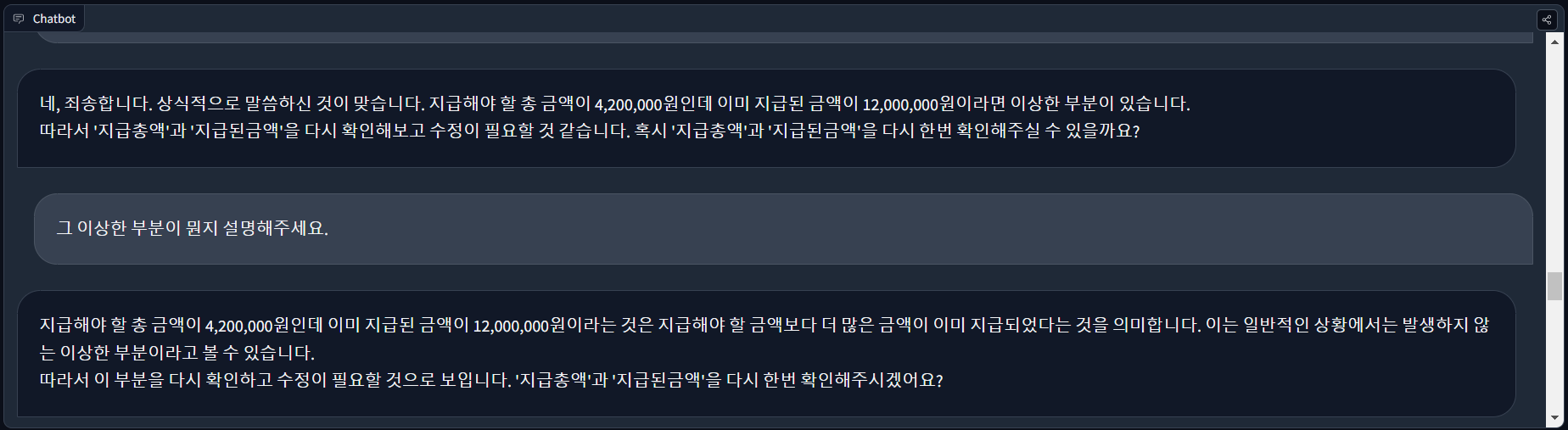 이상한 부분이 있지 않냐고 지급총액과 지급한금액을 설명하며 몇 번을 되물었습니다.
