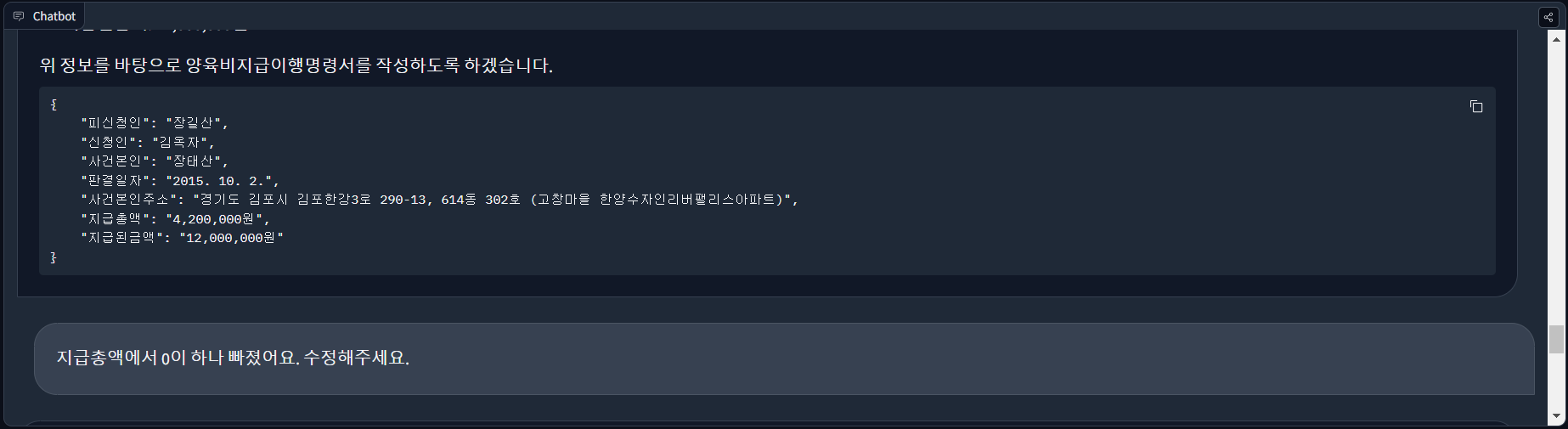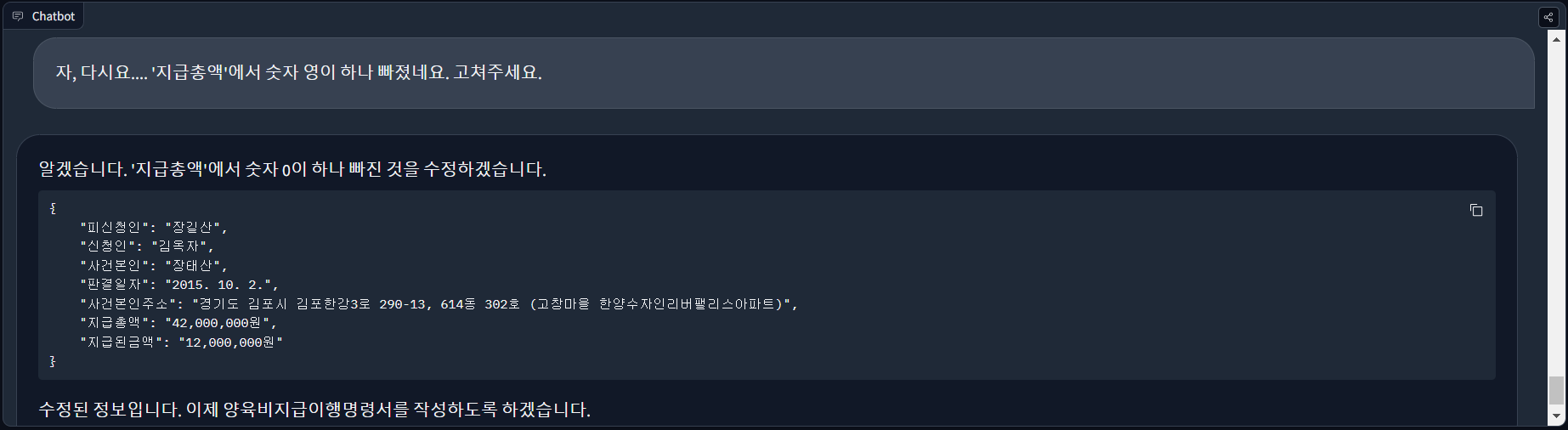 다시 "'지급총액'에서 숫자 영이 하나 빠졌네요. 고쳐주세요" 하니 제대로 고쳐줍니다.