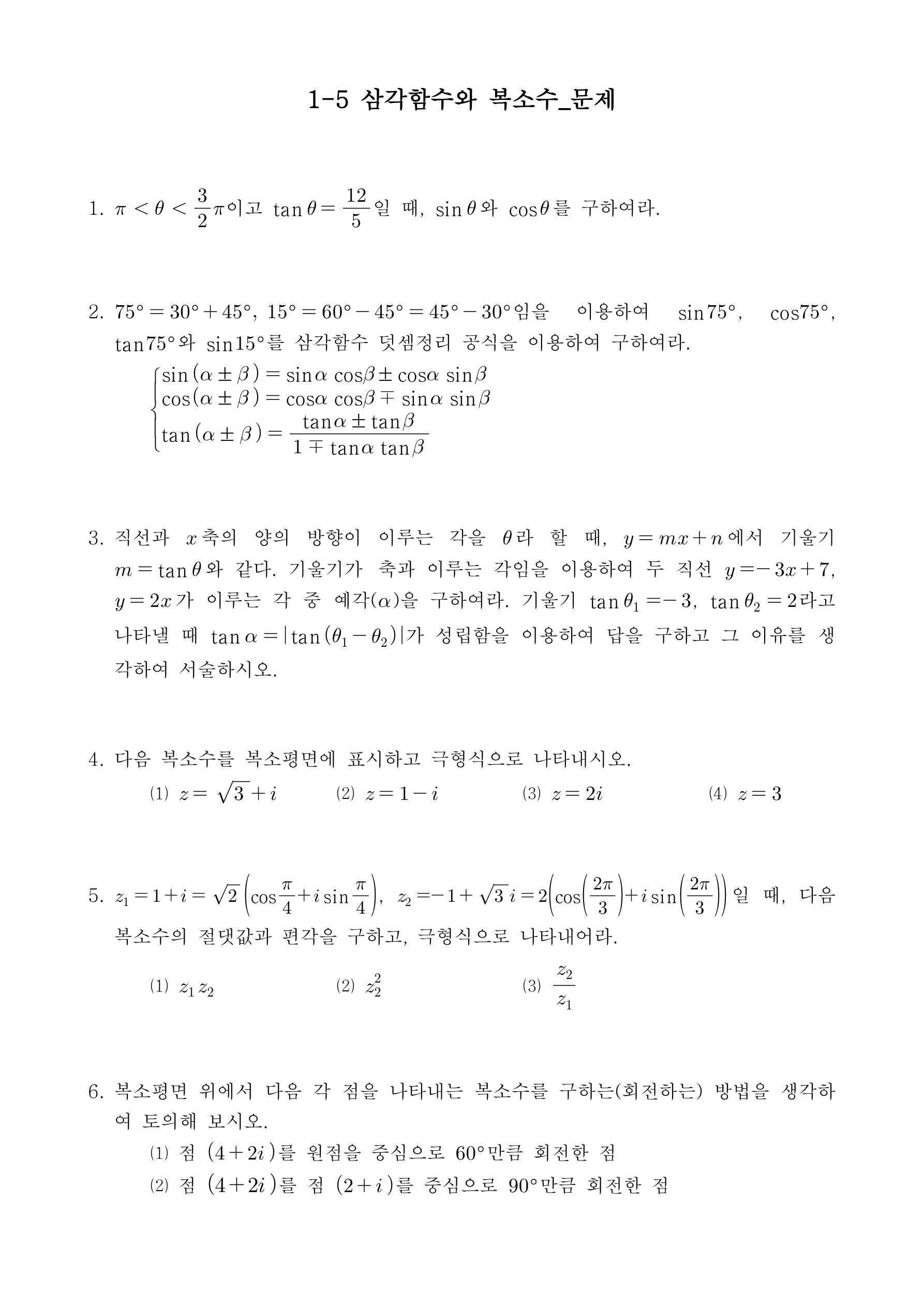 AI 기초 수학 정리 공책_14_1 삼각함수 덧셈정리와 복소수의 극형식_문제